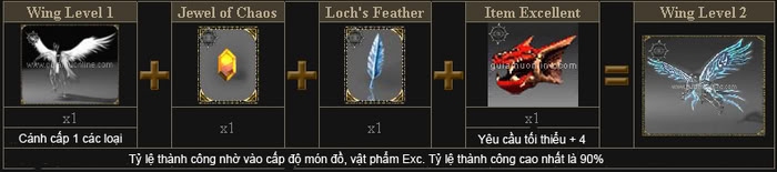 - Nếu thành công, nhận được ngẫu nhiên 1 trong 5 loại cánh cấp 2 ( DK DW ELF MG SM ).